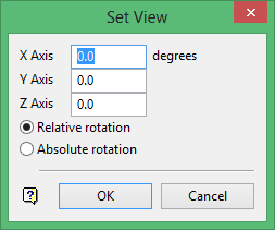 Use the Set View option to rotate the view of design data by indicating the origin of a set of 3D axes and then rotating these axes relative to the current view or to the plan view by a specified angle of rotation.
