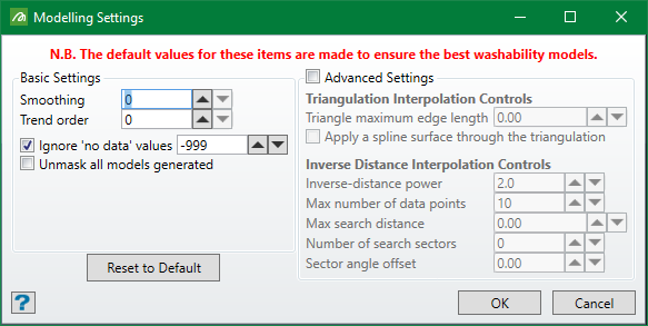 But it is very strongly recommended that these values are left in their default settings—especially using smoothing and/or tending of Triangulated/Inverse Distance models can produce unwanted artefacts, which could render the models unusable.