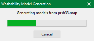 The model generation can be a lengthy process. Creating the mapfiles can be quicker than generating models. Meanwhile, a progress bar appears showing the stages of the process. The process can be terminated anytime by pressing the Cancel button.