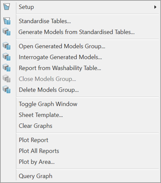 The main menu will have seven extra options (as used in legacy Washability system) for reporting on the curves displayed in the plot window. To know more, you can refer to the Legacy Washability Help.